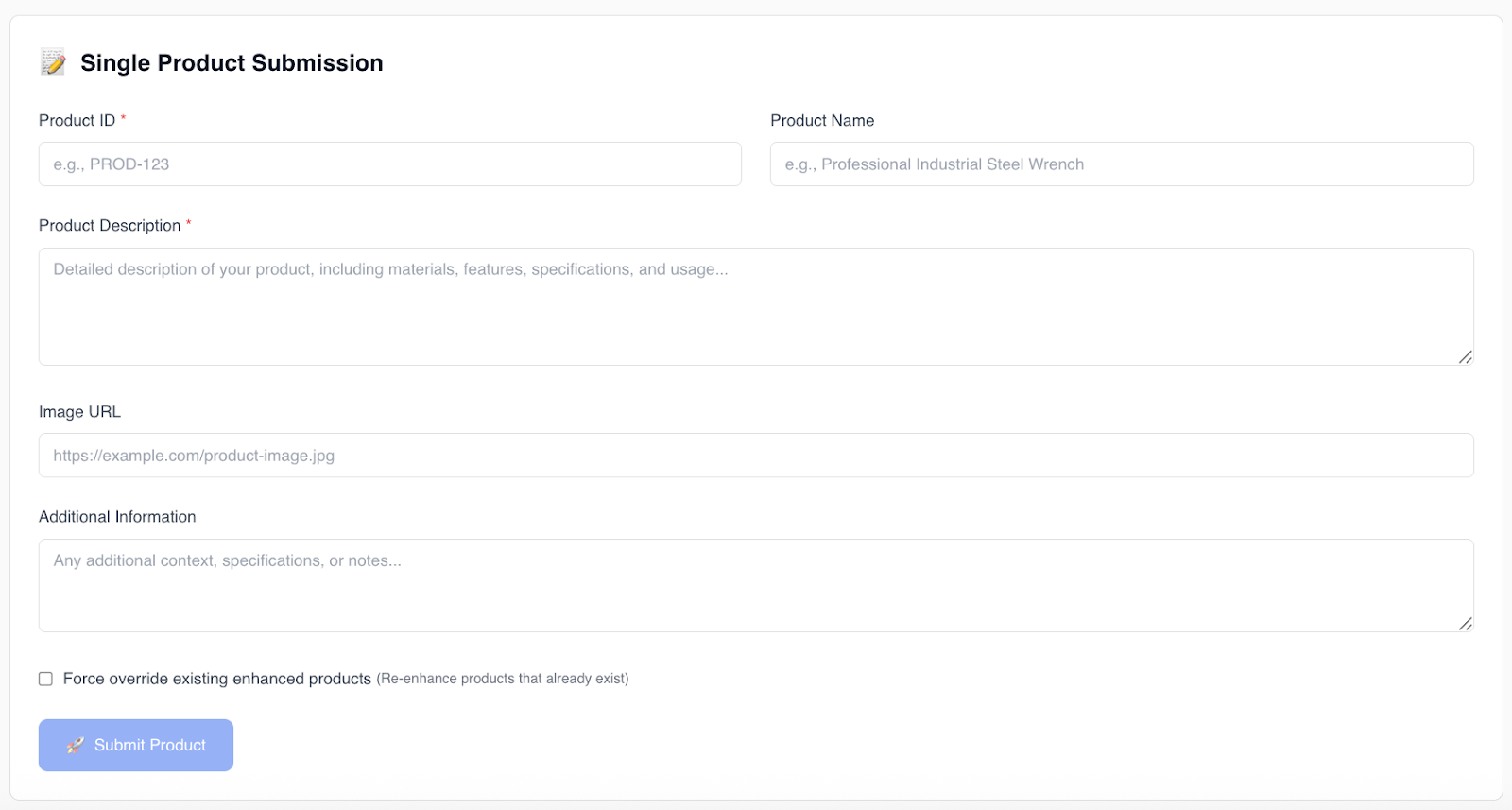 - Single product creation for small updates or testing